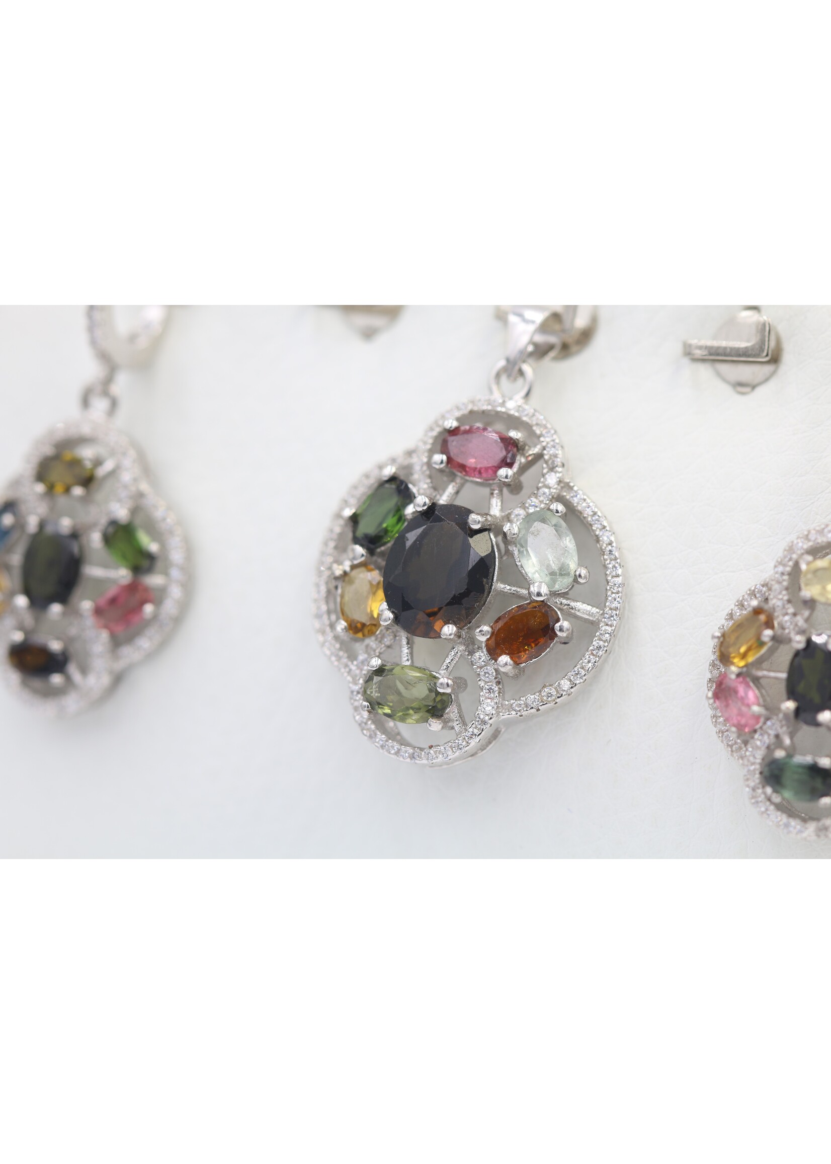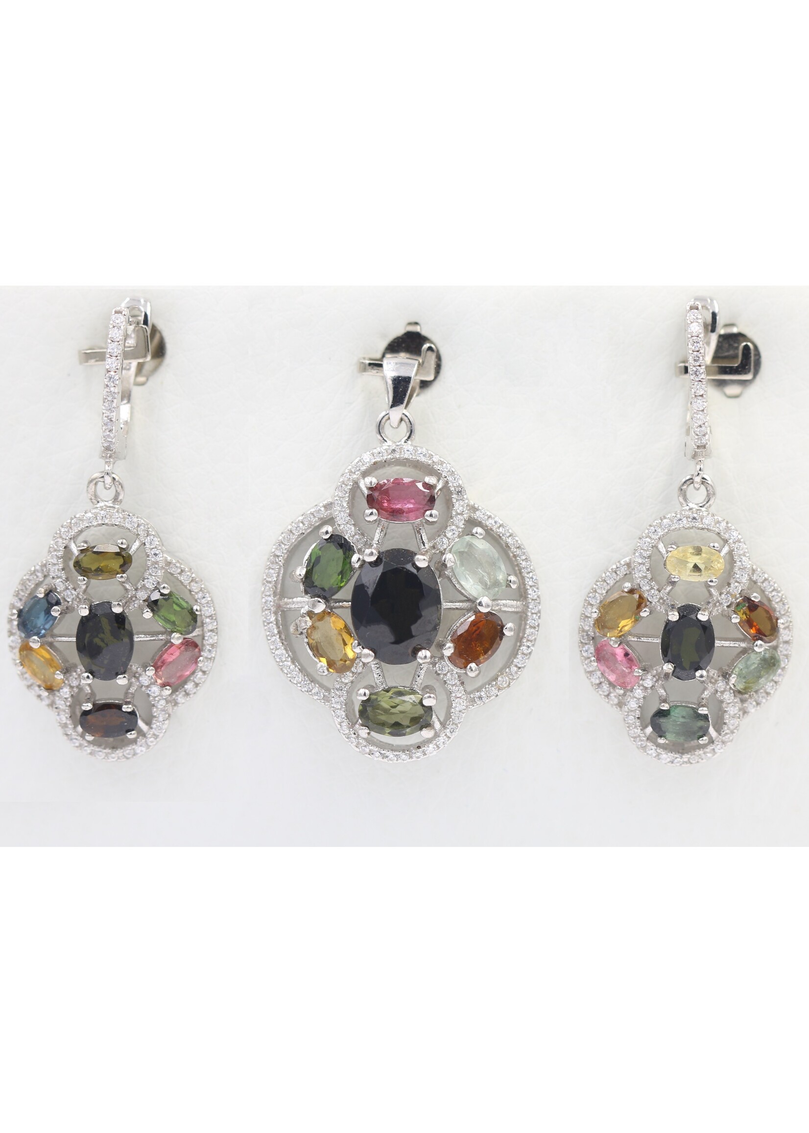 Parure in Argento 925 rodiato con Tormaline naturali Multicolori