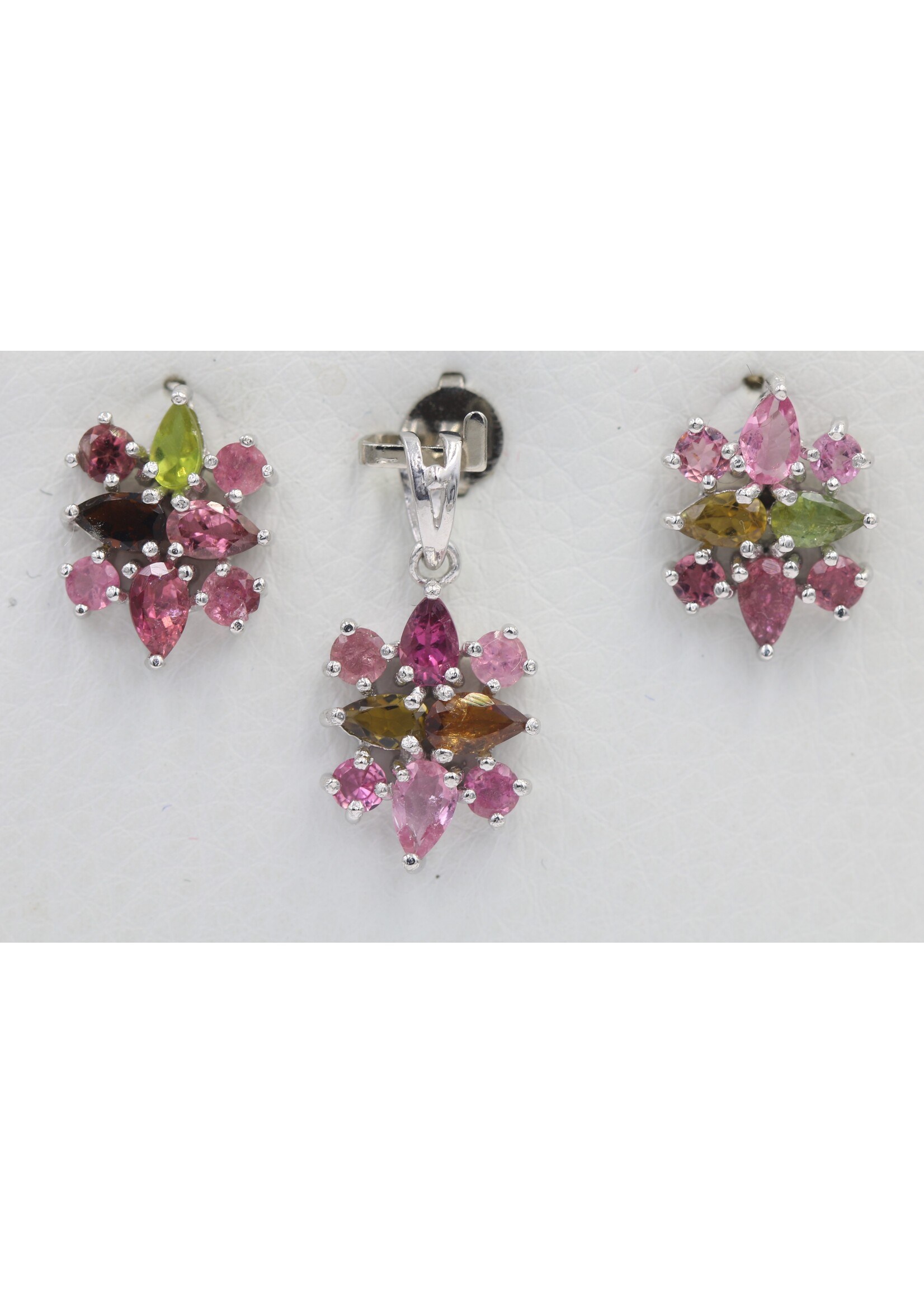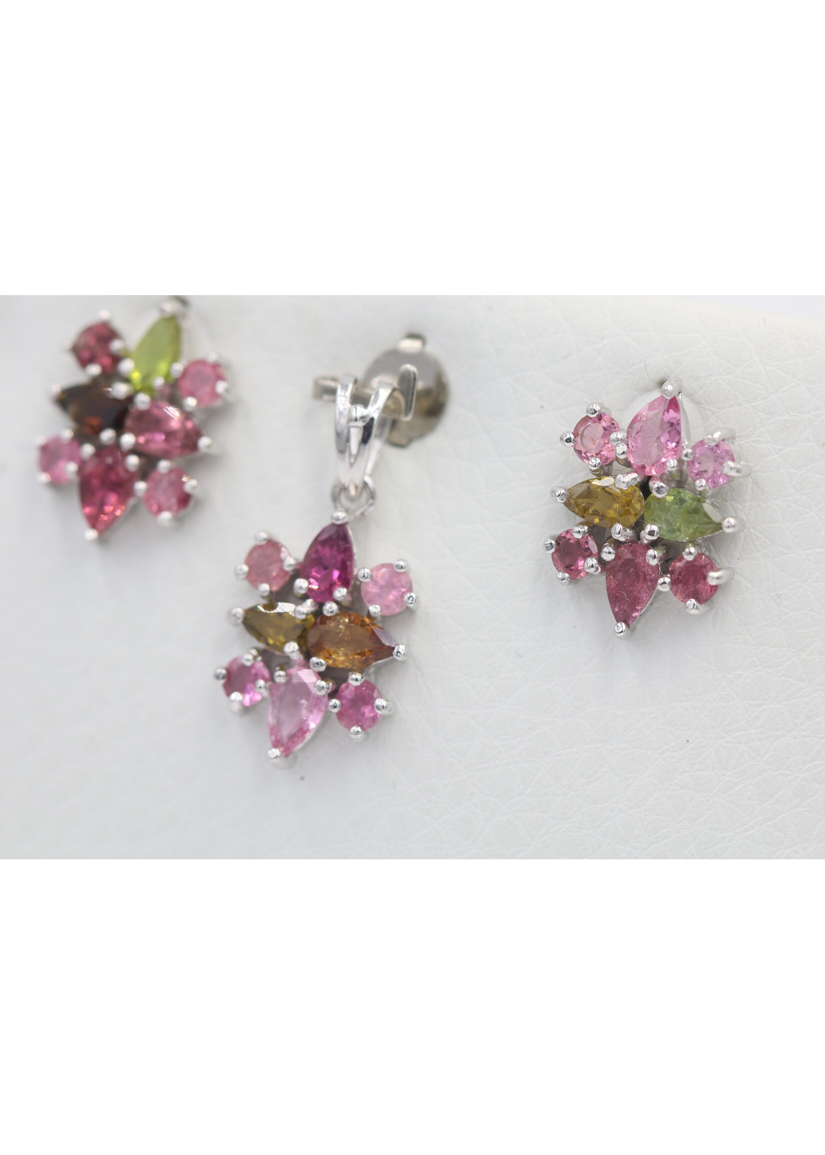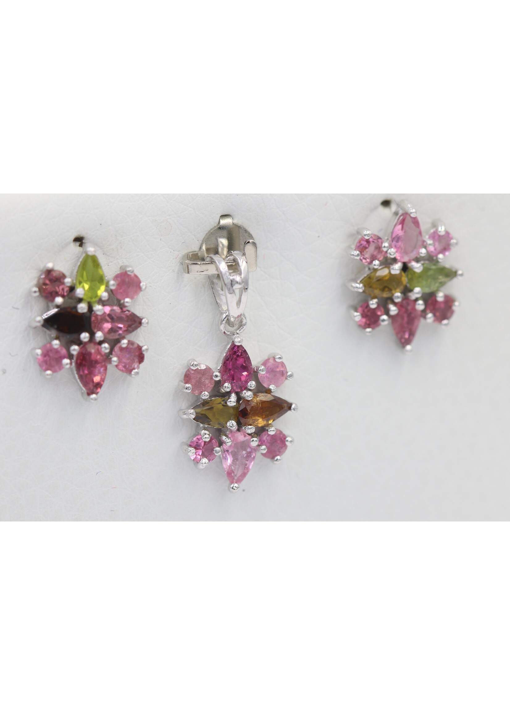 Parure in Argento 925 rodiato con Tormaline naturali Multicolor